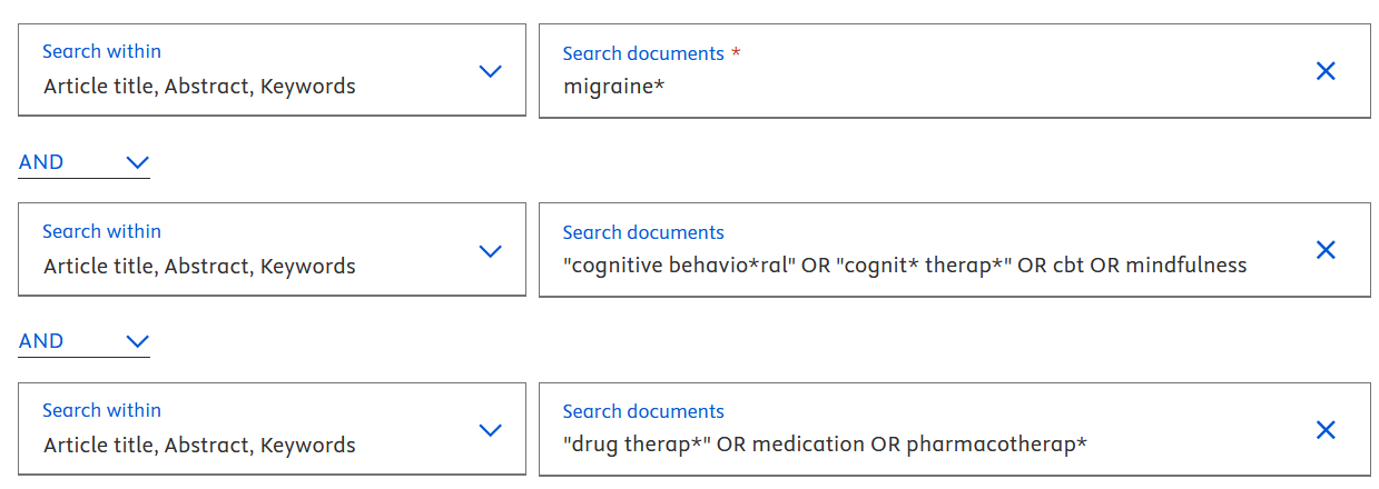 3. Create your search strategy from the concepts, synonyms, phrases etc in your concept grid.